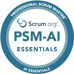 Artificial Intelligence is rapidly reshaping how products are built and how teams collaborate. As AI becomes embedded in modern product development, Scrum Masters and Agile Coaches are uniquely positioned to guide its responsible and effective adoption. Professional Scrum Master – AI Essentials (PSM-AI Essentials) is an official, hands-on Scrum.org course designed to help experienced Scrum practitioners integrate AI into their professional practice. This interactive training bridges foundational AI knowledge with real-world Scrum applications, enabling participants to enhance facilitation, improve decision-making, and strengthen team effectiveness.