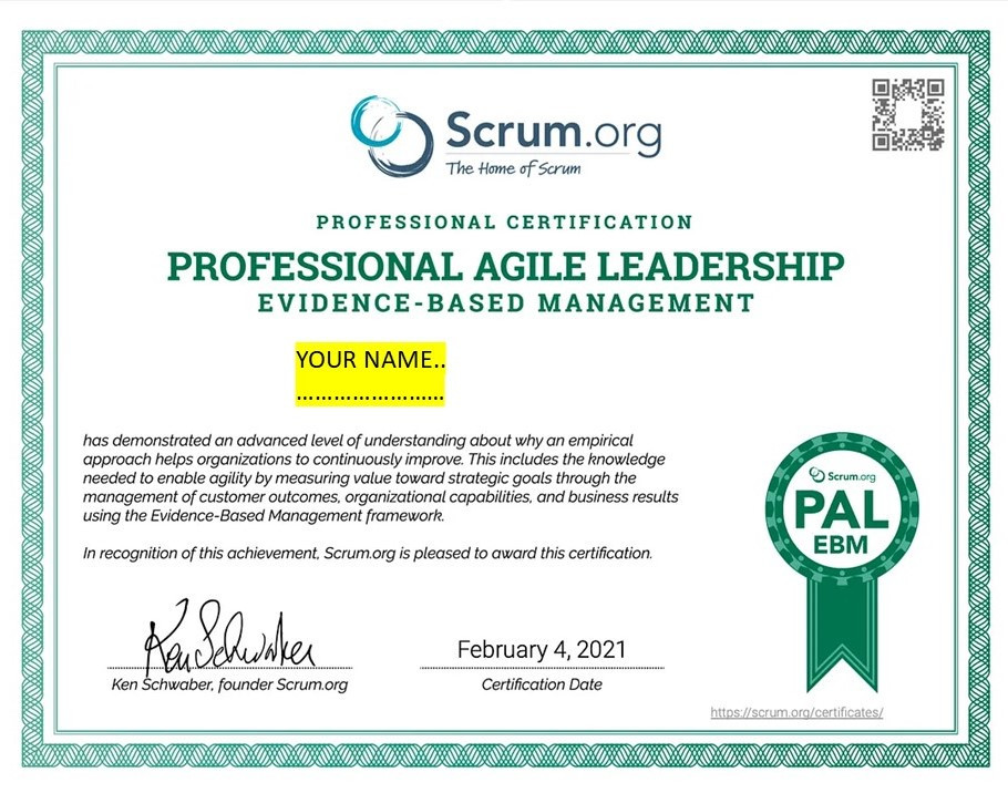 Professional Agile Leadership - Evidence Based Management (PAL-EBM)